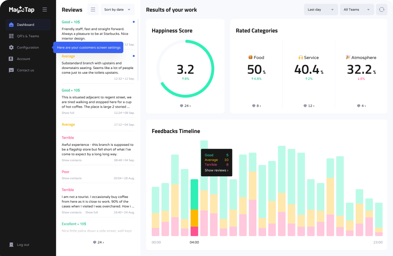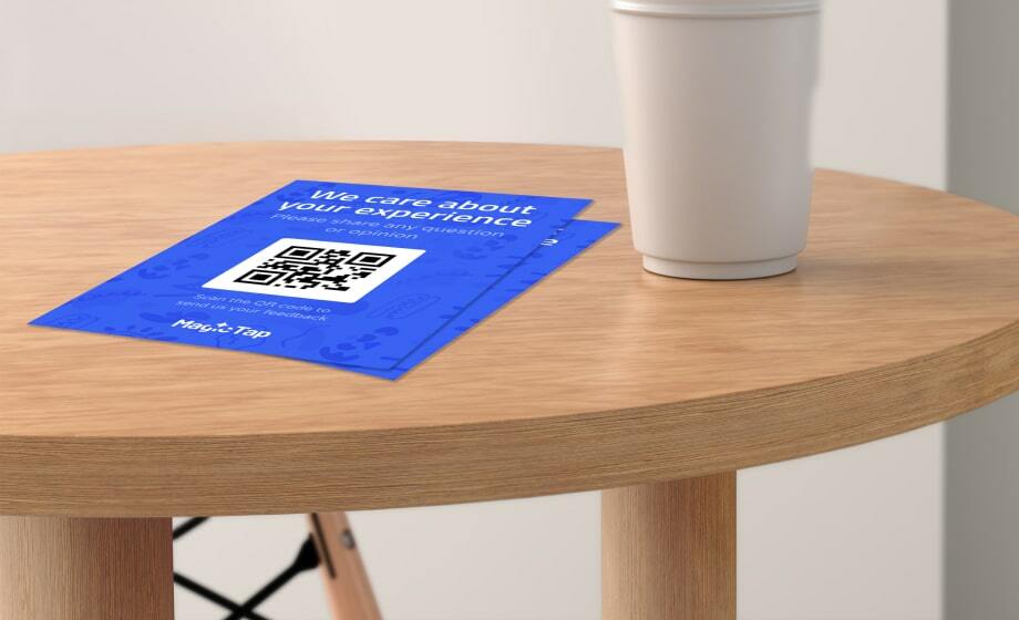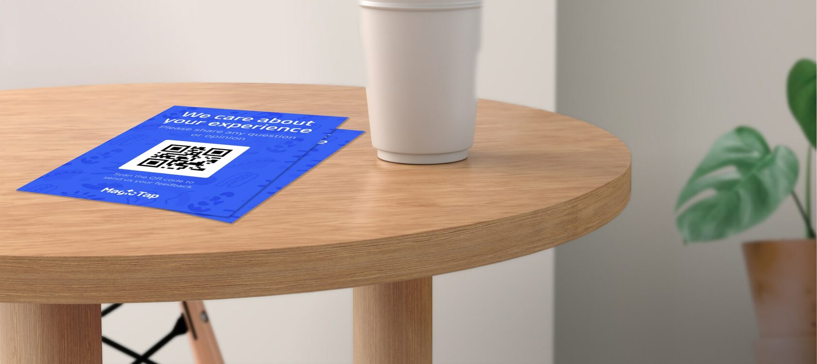- Put a sticker with QR on a table or a wall where your customers place an order or do a payment
